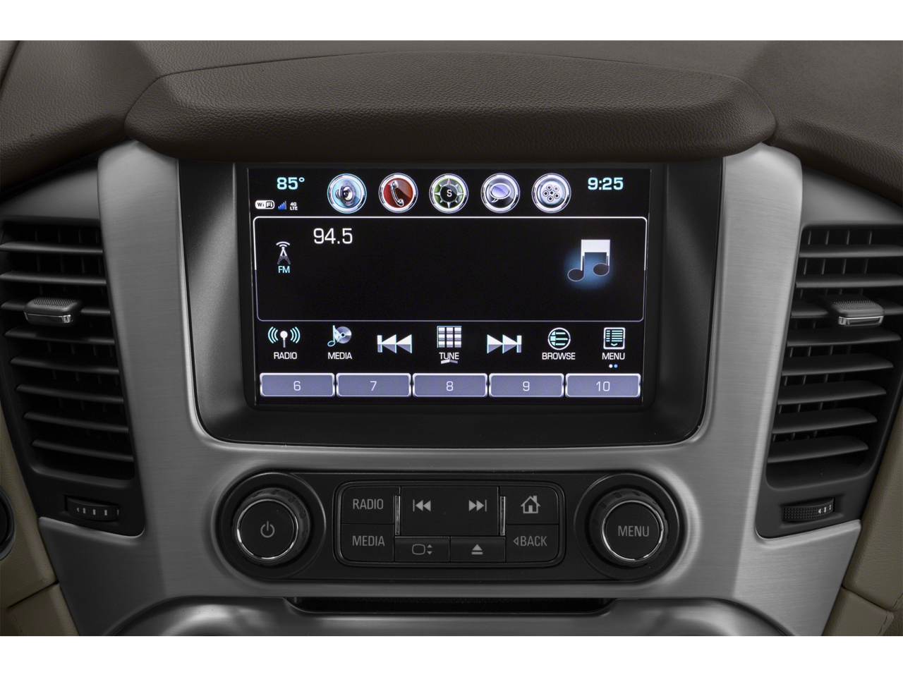 - Audio system, 8" diagonal Color Touch Screen Navigation with GMC Infotainment System AM/FM/SiriusXM stereo with seek-and-scan and digital clock, includes Bluetooth® streaming audio for music and select phones; voice-activated technology for radio and phone; and Shop. Featuring Apple CarPlay and Android Auto capability for compatible phone; 5 USB ports and 1 auxiliary jack