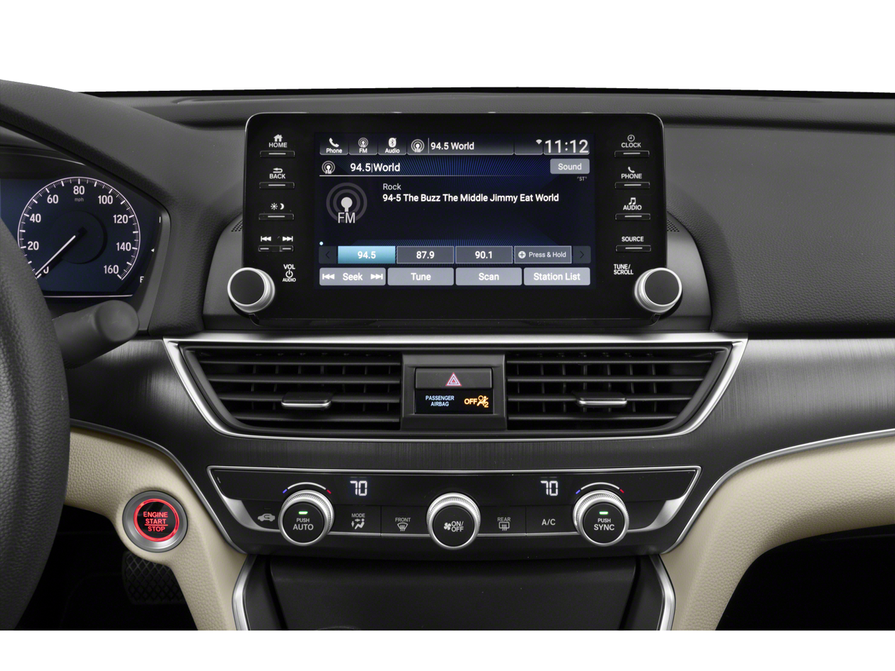 - Radio: 160-Watt AM/FM Audio System -inc: 4 speakers, 8" display audio w/high-resolution electrostatic touch-screen, knobs and hard keys for primary controls and customizable feature settings, Bluetooth® HandsFreeLink, Bluetooth® streaming audio, Radio Data System (RDS), Speed-Sensitive Volume Compensation (SVC), HondaLink, Apple CarPlay integration, Android Auto integration, 2 2.5-amp USB smartphone/audio interface ports in front console, illuminated steering wheel-mounted controls and body-colored fin-type roof-mounted antenna